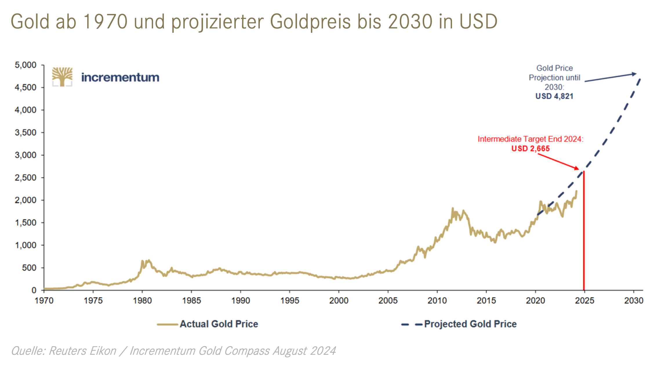 Goldpreisentwicklung & Projektion bis 2030. Quelle: Incrementum + SOLIT