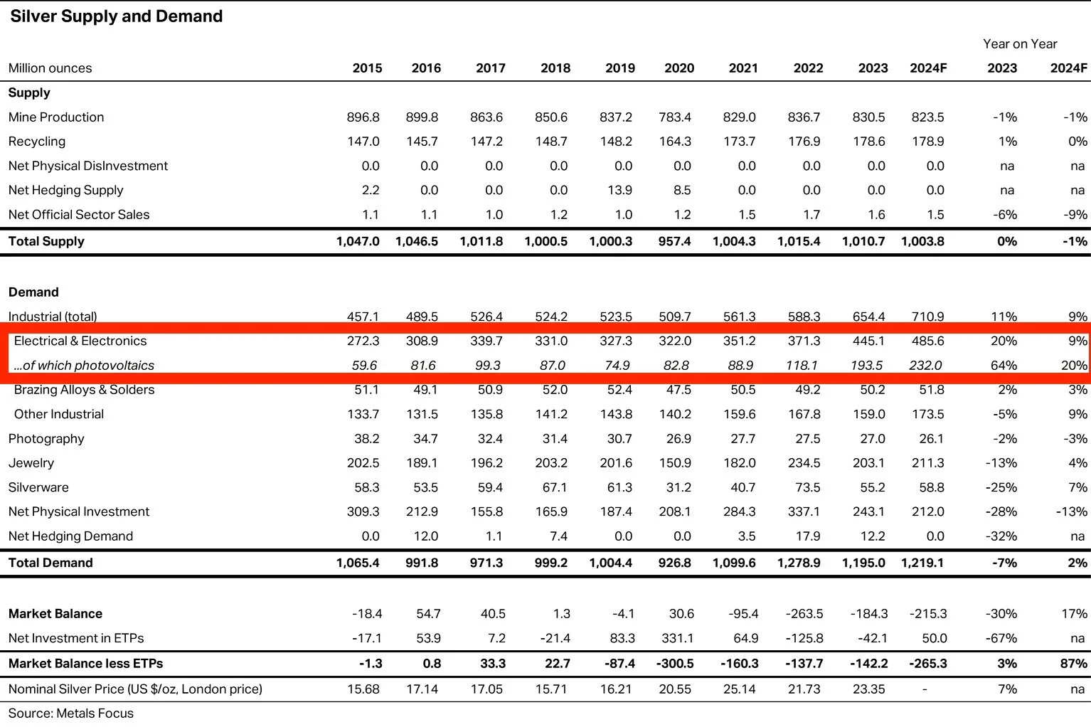 Elektronik & Solarindustrie – Silber ist der beste elektrische Leiter und unverzichtbar für Mikrochips, Smartphones und Photovoltaik. Allein für 2024 ist ein Wachstum der Nachfrage um 20% zu sehen.