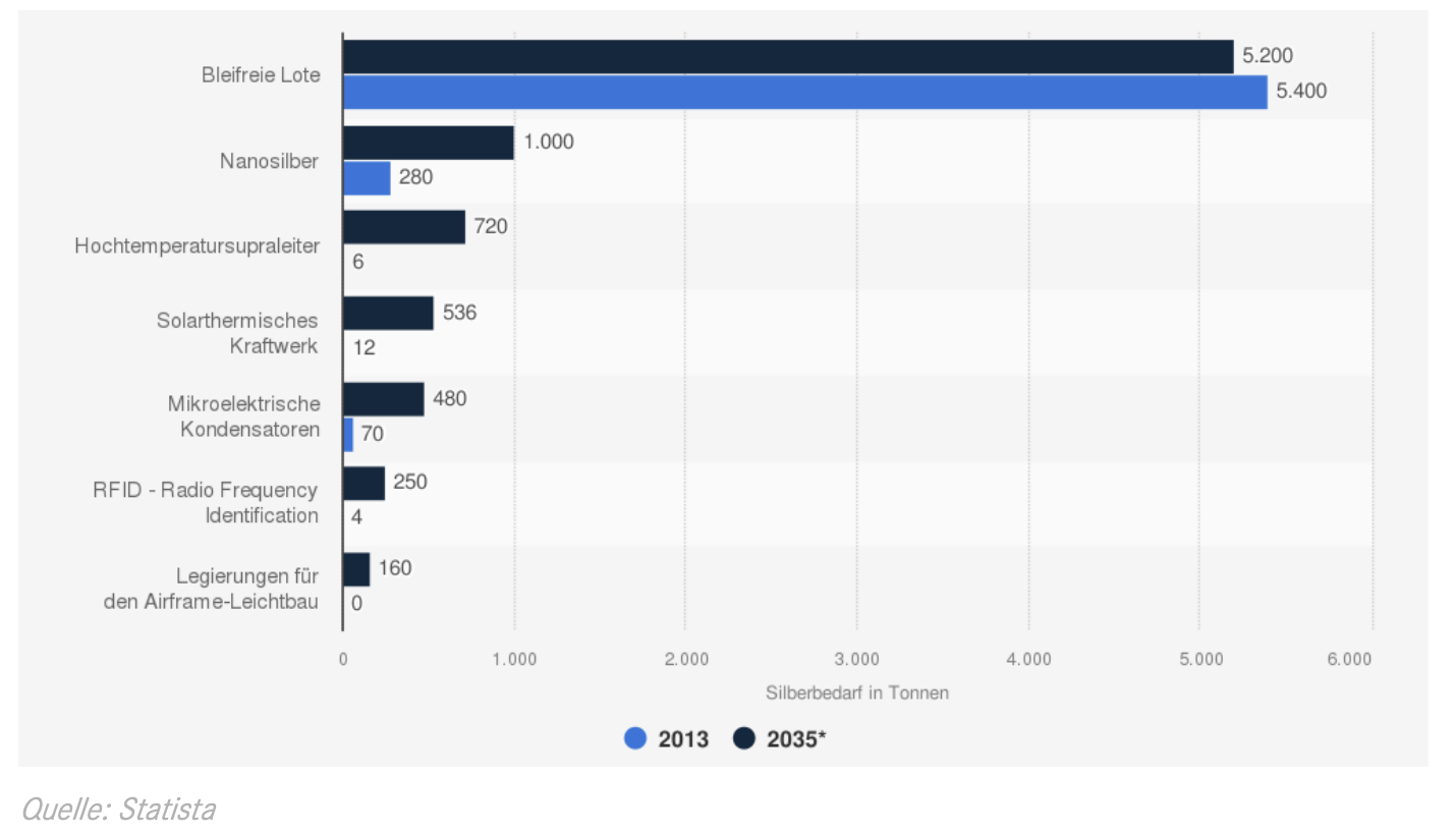 Erwartete Nachfrage nach Silber. Quelle: Statista