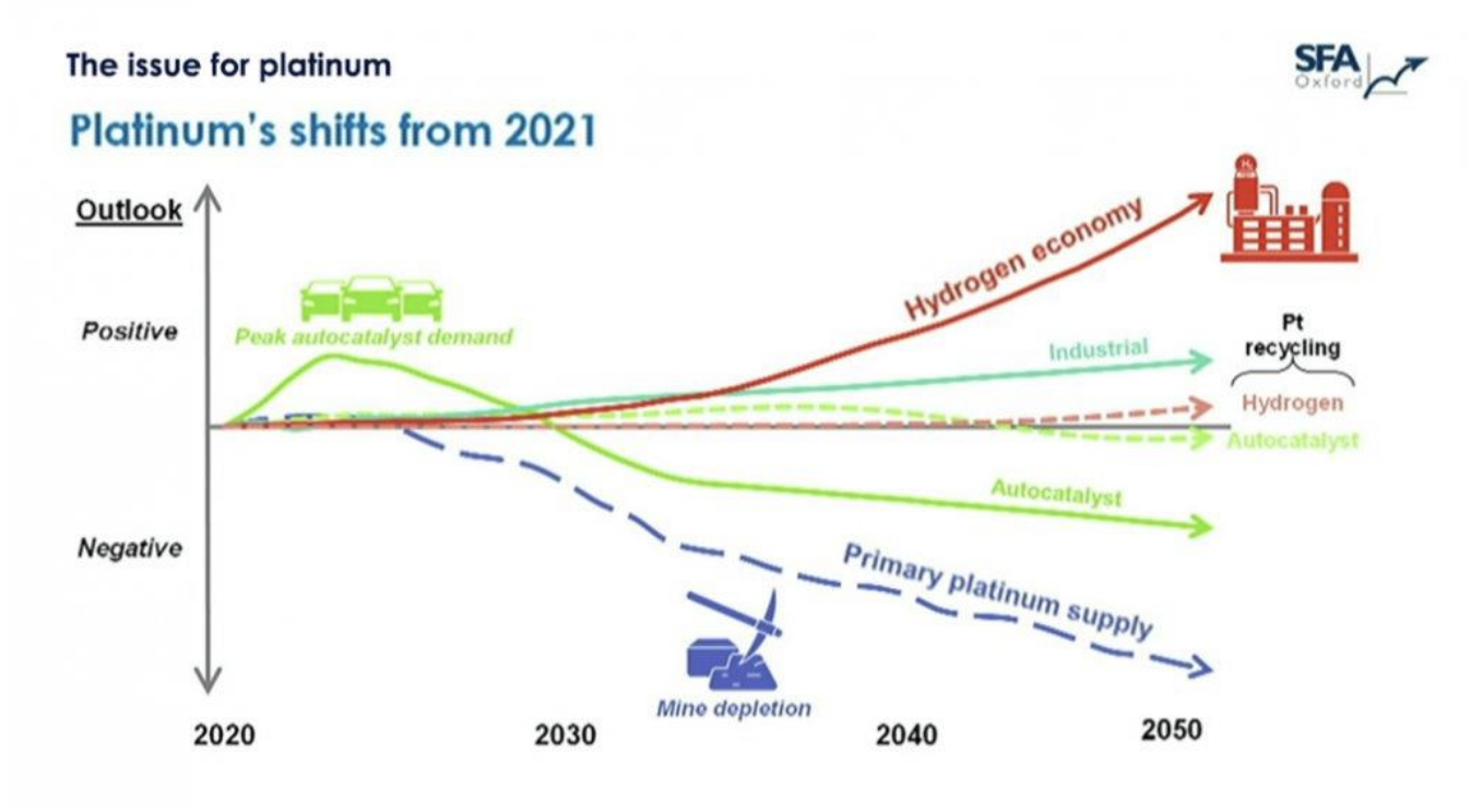 Entwicklung der Nachfrage für Platin. Quelle: SFA Oxford